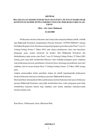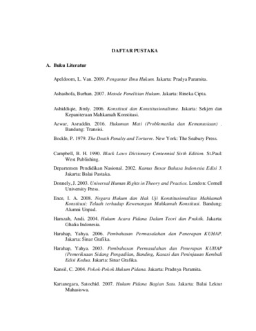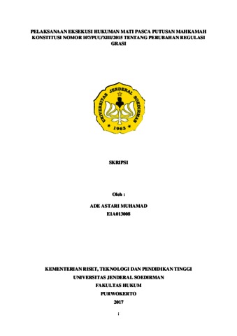 MUHAMAD, Ade Astari (2017) Pelaksanaan Eksekusi Hukuman Mati Pasca Putusan Mahkamah Konstitusi Nomor 107/PUU/XIII/2015 tentang Perubahan Regulasigrasi. Skripsi thesis, Universitas Jenderal Soedirman.